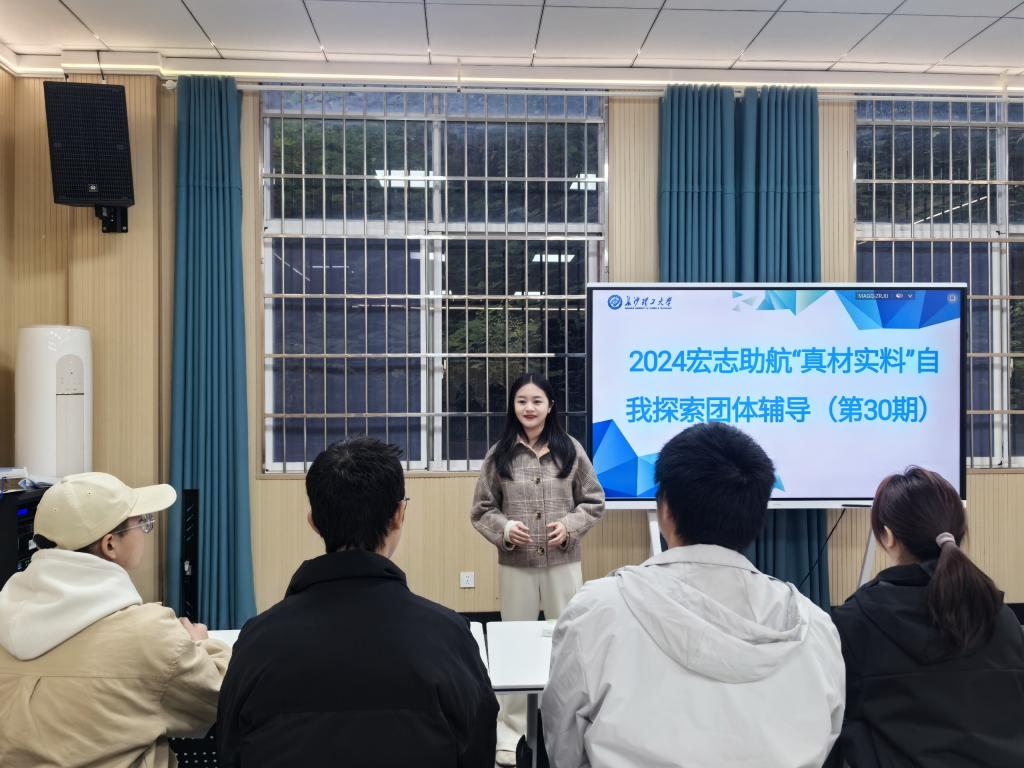 2024122日下午,材料学院在就业一站式服务中心多媒体功能厅开展了第三十期宏志助航“真材实料”生涯探索团体辅导。此次团辅由辅导员谢易真主持,24级新生代表参与。