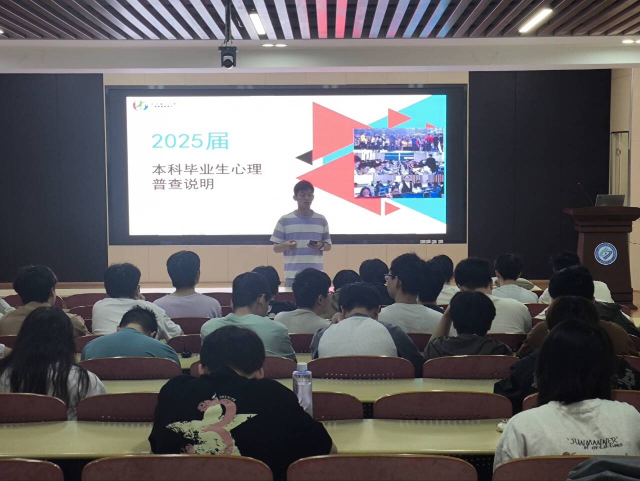 会上着重强调了心理普查的重要性和保密性,并针对学校心理普查的具体要求,详尽地解读了普查过程中的注意事项,在统一时间、统一地点、统一指导语开展毕业生心理普查,要求所有同学需通过手机端完成填写。