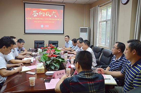 7月19日下午,城南学院与中博教育股份有限公司在金盆岭二教202举行ACCA项目合作办学签约仪式。中博教育副总裁罗永君、校企合作部湖北省开发总监杜红兵、湖南分公司总经理肖承冠以及城南学院全体班子成员出席了签约仪式。副院长向永生主持签约。