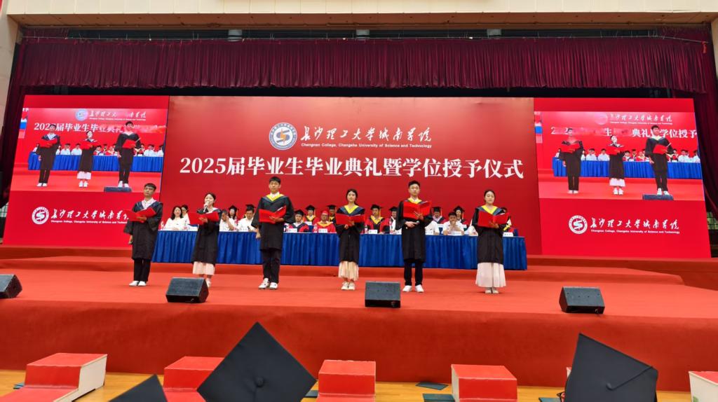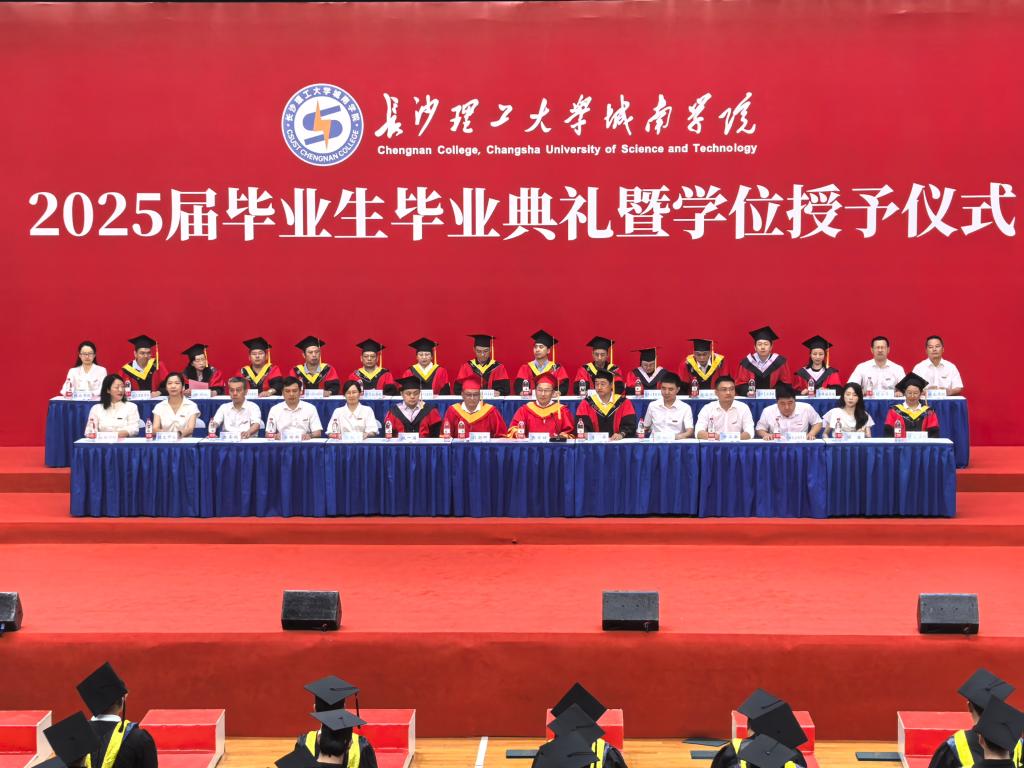 6月20日上午,威廉体育williamhill城南学院2025届本科生毕业典礼暨学位授予仪式在金盆岭校区体育馆隆重举行。副校长、城南学院董事长刘朝晖、学校有关职能部门负责人、各培养学院代表、学院领导、教师代表、部分家长及2025届毕业生参加典礼。典礼由副校长张军辉主持。