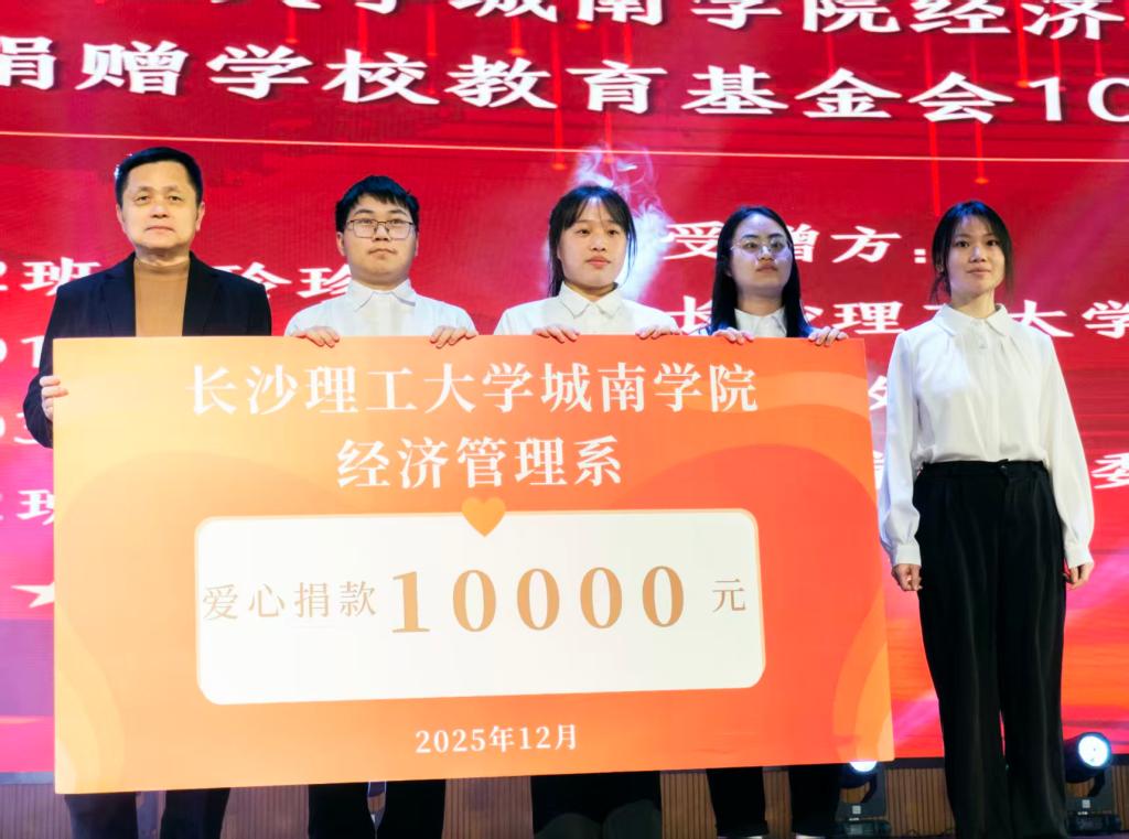 青春有爱,同心同行。晚会中,市营2202班文玲珍,国贸2201班何芳,金融2203班刘艳红,会计2302班吴与同四位同学倾情捐赠奖学金,以点滴善意汇聚暖流,用赤诚之心助力身边同学笃行致远、逐梦成长,这份同窗情暖,尽显青年担当与向善力量。