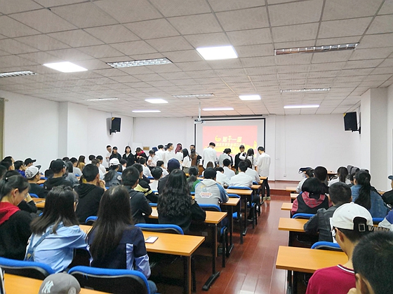 首先,两位老师以及学生干部为干事佩戴团徽。接着,全体起立共唱《共青团团歌》。随后,各部门干部代表上台讲解PPT,各部门干事依次上台做自我介绍。然后系学生会主席张恩宁对加入学生会的新干事表示了热烈的欢迎,希望这股新鲜血液的注入,系学生会能发展得越来越好。