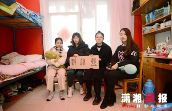 1月5日,城南学院团委、橙蓝传媒联合长理微博协会、潇湘晨报一同对陈宽以及收到春联的四名同学进行了采访。在寝室的楼梯间一眼望过去,有对联的寝室十分打眼。门口写着 “ 舍含清香绕佳人,室有诗书伴仙女 "”、横批“ 金屋藏娇 ”,中间还贴有 “ 福 ” 字。进到寝室后,一张用小篆书写的“盘丝洞”的木板就放在了进门正对着的窗台上。对于春联的内容四名女生会觉得“又是仙女又是佳人的,有点直白了”。陈宽则说直白点好。“盘丝洞就是我们寝室的风格比较像吧。红色的壁纸,白色的纱。其实我们一开始是参与寝室文化节,准备装饰一下。”被问到“盘丝洞”这个名字的由来时,女生们这样说到,“也纠结了很久,不知道叫什么,后来还是决定了盘丝洞这个名字。”