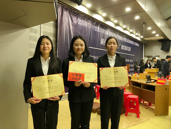12月7日晚7点,由中国管理现代化研究会廉政建设与治理研究专业委员会主办的2018年全国大学生廉洁教育活动月系列活动之湖南省“八校联合”廉洁知识竞赛在湖南大学拉开帷幕。我院文法艺术系3名同学组队参赛,最终荣获  三等奖。