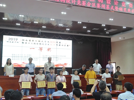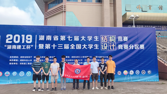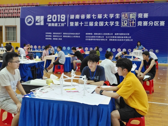 6月28日至30日,“湖南建工杯”第七届湖南省大学生结构设计竞赛暨第十三届全国大学生结构设计竞赛分赛区在湖南科技大学举行,本次竞赛是由湖南省住建厅、教育厅联合主办,湖南建设人力资源设计协会、湖南科技大学承办,湖南建工集团冠名赞助,来自中南大学、湖南大学等28所普通高等学校的76支队伍228人参与角逐。威廉体育williamhill城南学院王宇星、李谦、姜晓峰三名同学组成的参赛队,在现场完成的作品《老冰棍》荣获一等奖;贺嘉伟、李焕、艾雨鹏三名同学在现场制作的作品《小布丁》荣获三等奖。