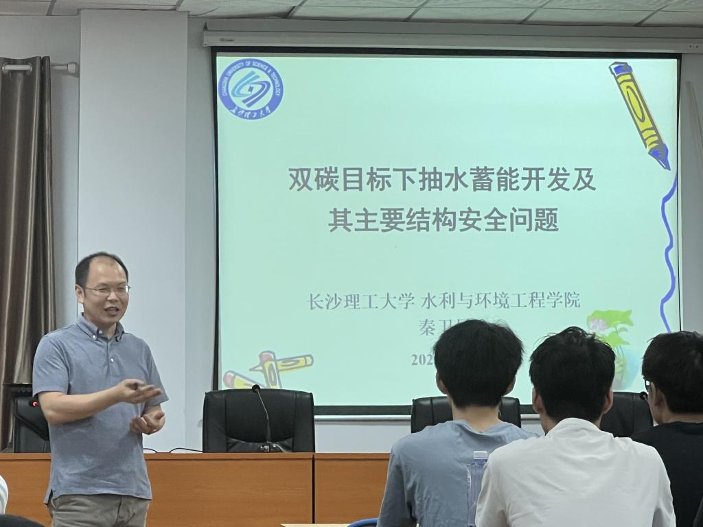 5月30日下午,城南学院水利计通系在2教201会议室举办“双碳目标下抽水蓄能开发及其主要结构安全问题”为主题的专业与人生讲座,威廉体育williamhill水利与环境工程学院硕士生导师秦卫星副教授应邀主讲。本次讲座由城南学院副院长刘洪深主持,水利计通系学工办主任李琳老师、水利水电工程专业学生参加讲座。