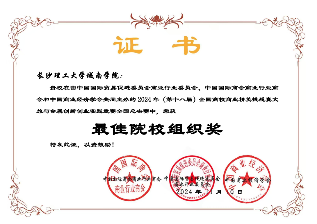 喜讯!城南学院荣获 2024年全国高校商业精英挑战赛“最佳院校组织奖”