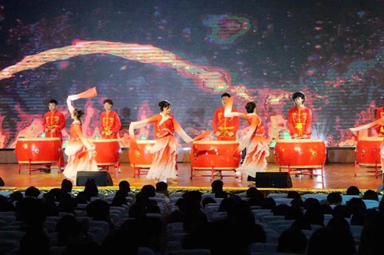 晚上七点,晚会准时开始。率先开场的是由闫昊同学带头的鼓旗舞《中国龙》。“鼓声三下红旗开,两龙跃出浮水来”,舞台上鼓声铿锵,水袖翩翩;舞台下红旗招展,腾飞腾舞。在鲜艳的中国红主色调烘托下,似有腾龙盘亘空中,气势磅礴,尽显霸气。