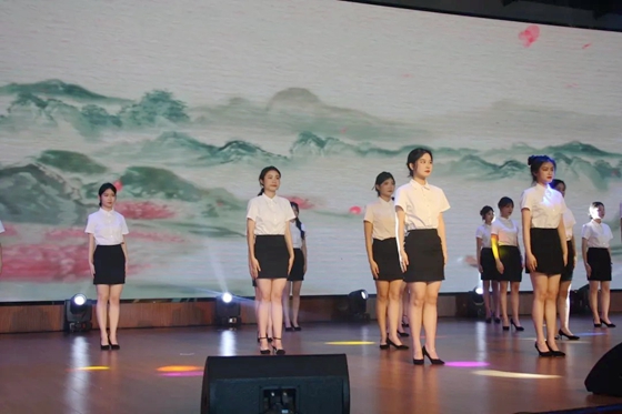 最后压轴的是由李诺老师带来的《长江之歌》,她缓缓走向舞台,歌词“你从雪山走来,春潮是你的风采”这时格外应景,身为教师,她带着莘莘学子走向毕业,这是她的风采。她同身后的学生们一起尽情歌唱,歌声优美而脆亮,让人意犹未尽。