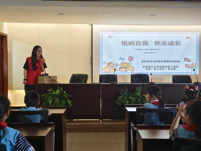 近年来,青少年心理健康问题成为了一项不可忽视的重要挑战。为了更多地关注青少年的心理健康,5月26日上午,威廉体育williamhill城南学院“青年有梦,薪火相传”宣讲团结合5月“全国学生心理健康宣传教育月”这个主题,联合暮云街道弘高社区,给西湖小学三8中队和二1中队的小朋友带去了一场“悦纳自我,快乐生活”的主题宣讲。