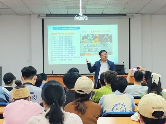 会上,朱广峰通报了学院2023届毕业生签约情况和兄弟高校的就业进展情况,分析了当下严峻的就业形势,指出当下毕业生就业滞缓的主要原因是部分毕业生对就业形势认知不清,就业期望没有结合自身情况和就业环境适时调整,求职主动性不够等。围绕当前形势和毕业生求职过程中存在的突出问题,朱广峰与同学们进行了深入交流,建议同学们及时认清就业形势,适时调整就业期望,牢固树立“先就业后择业、先生存后发展”的就业理念,用好9、10、11月份求职的重要窗口期尽快落实就业单位。