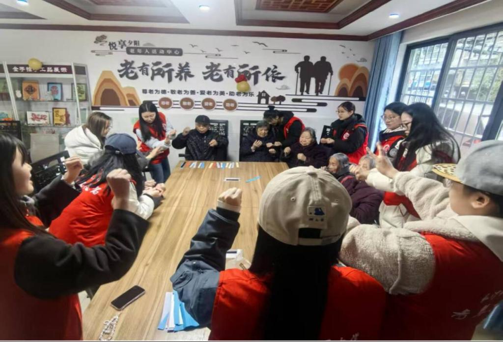 为给老人带来欢乐,志愿者们精心筹备了文艺演出。婉转的戏曲演唱,勾起老人们的美好回忆;轻快的快板表演,赢得阵阵掌声,以幽默方式传递养生要点。同时引导老人们做编织花和康复手指操,锻炼老人脑与肢体的协调性,老人们全情投入,笑声不断。活动中,志愿者们了解到一位90岁的退休老教师和一位退休医生,分享了他们的人生经历。老教师讲述了教书育人的岁月,了解志愿者们的学业情况,并鼓励青年人要保持上进的动力。另一位退休医生则感慨地说:“我经历过无数的病人,抢救了很多生命,如今生活平静,看到你们这些年轻人来看望我们,心里特别欣慰,感觉自己也年轻了几岁。