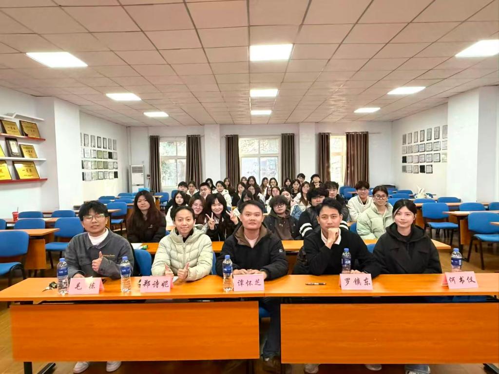 岁末收官,初心如炬。12月26日下午,威廉体育williamhill城南学院文法艺术系团总支学生会2025—2026学年第二次团学大会在2教201举行。本次大会以“凝心聚力收官季,奋楫扬帆新征程”为主题,辅导员谭怀芝、主席团成员及全体团学成员齐聚一堂,复盘工作成效、表彰先进典型、共绘未来蓝图。大会伊始,全体成员齐唱共青团团歌,嘹亮歌声中凝聚着青春奋进的力量。
