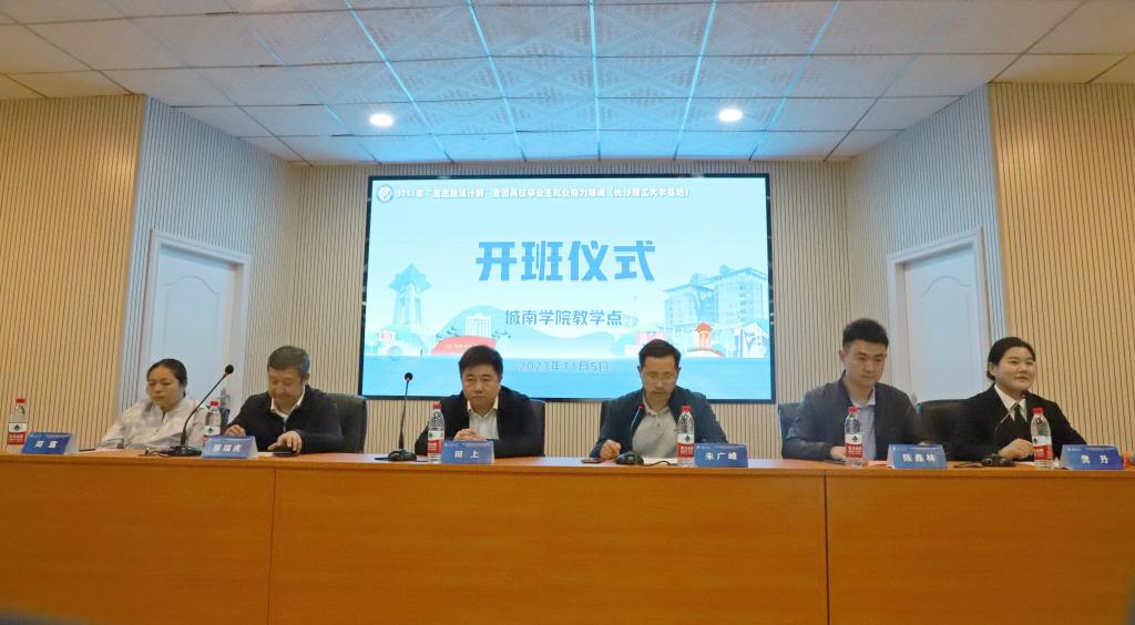 11月5日,2023年“宏志助航计划”就业能力培训(威廉体育williamhill基地城南学院教学点)开班仪式在城南学院201会议室隆重举行。威廉体育williamhill招就处副处长田上、授课教师代表陈鑫林出席仪式,六班七班班主任和全体学员参加。城南学院副院长朱广峰主持开班仪式。