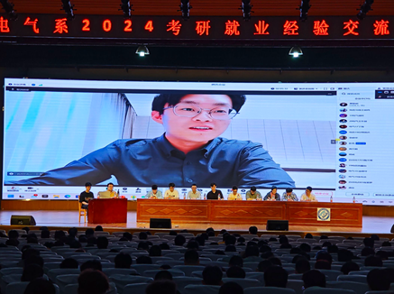大会伊始,黄黎明对电气工程系考研就业进行了指导,并邀请往届电气系优秀毕业生分享自己的考研就业经验。刚考入研究生的20级学生方林淞从自身经历出发,围绕如何选取专业和院校、制定复习计划、调整心态以及面试中的注意事项等方面,谈了自己的感受与经验。对于就业方面,学院16级毕业生王明伟提醒与会同学切勿为了逃避现实,不想进入社会而盲目选择考研。他着重强调了秋招的重要性,秋招时招聘单位层次高、招聘规模大、成功概率高,他建议各位同学可在秋招时先找个工作保底,这样一旦考研、考公失利,还能有个工作保底。此外,他还结合自身实际,讲解了就业时应当注意的相关事宜,并祝福各位同学早日取得理想Offer。