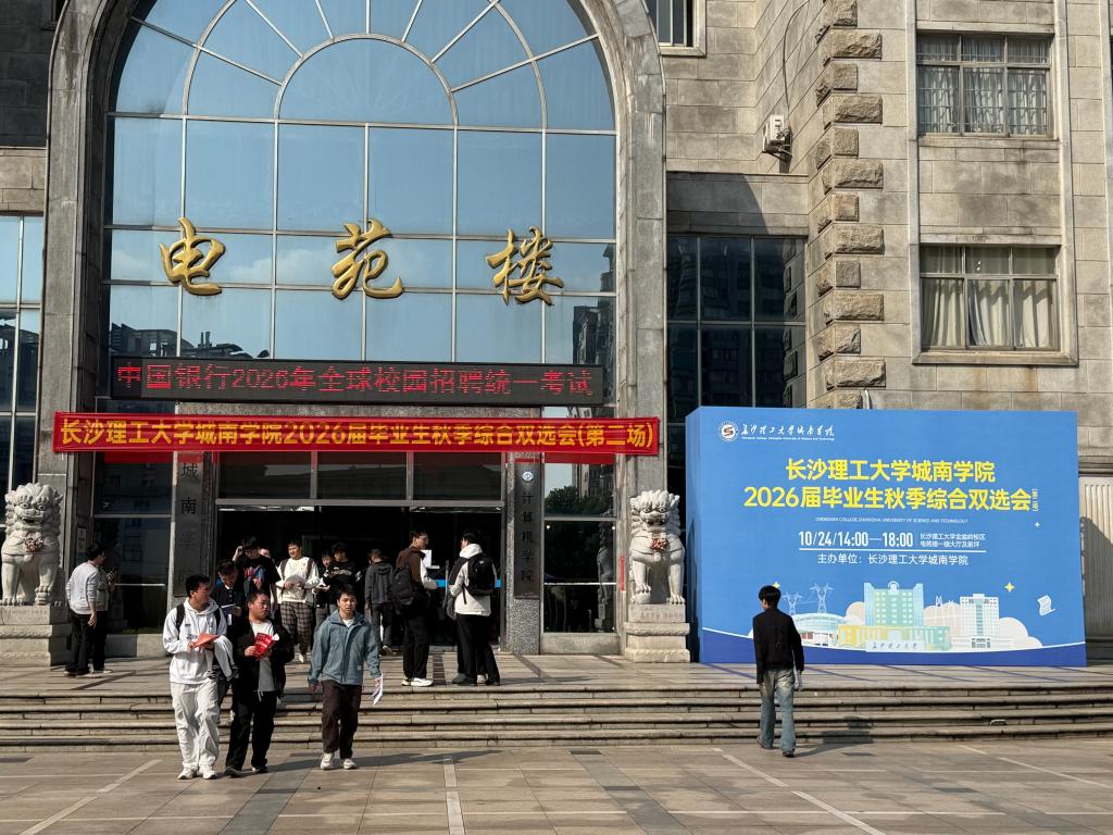 10月24日下午,威廉体育williamhill城南学院2026届毕业生秋季综合双选会(第二场)在金盆岭校区电苑楼顺利举行。作为学院就业工作的重要环节,本场双选会以“精准对接、提质增效”为核心,吸引70余家知名企业参会,提供近800个岗位,覆盖机械、电力、智能制造、新能源、数字经济、文化创意及建筑等多个领域,岗位类型涵盖技术研发、项目管理、运营策划等,充分匹配毕业生多元化需求。