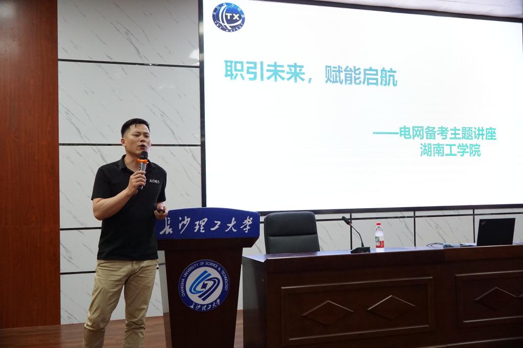 讲座围绕电气专业就业形势、国家电网与南方电网招聘政策、考试流程、湖南电网考情及湘能农电情况展开系统讲解。主讲人结合行业现状与招录特点,为同学们梳理备考重点、明晰报考路径,解答备考疑惑,帮助大家精准把握电网就业方向。