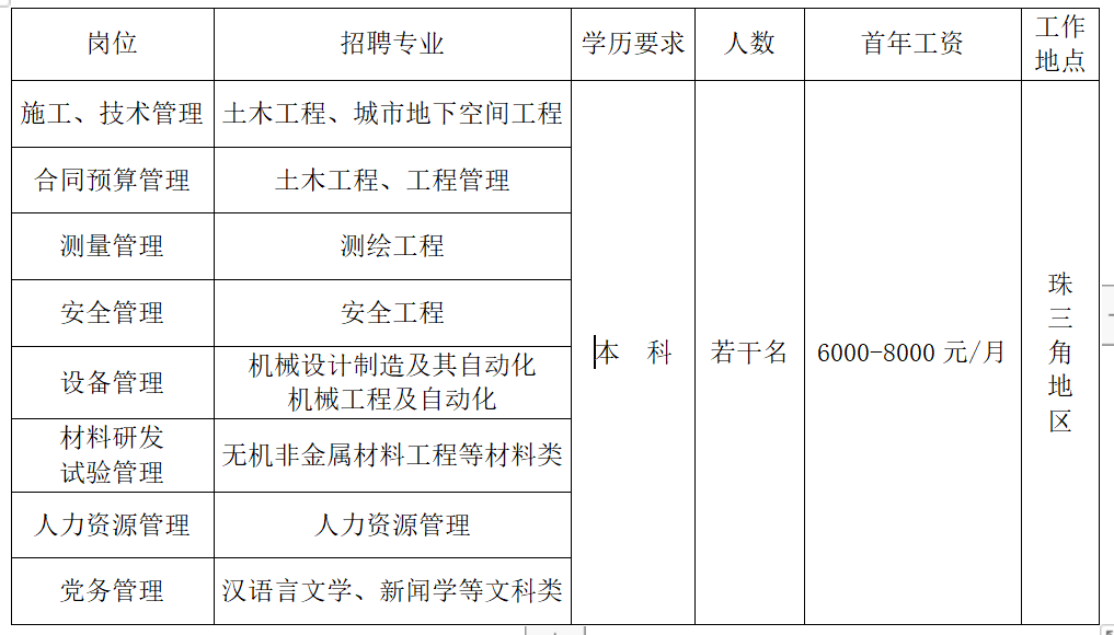 招聘专业:工程力学,土木工程,城市地下空间工程,道路桥梁与渡河工程,水利水电工程