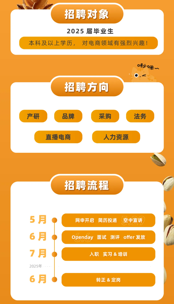 百草味2025届“百味练习生”招聘启动啦!