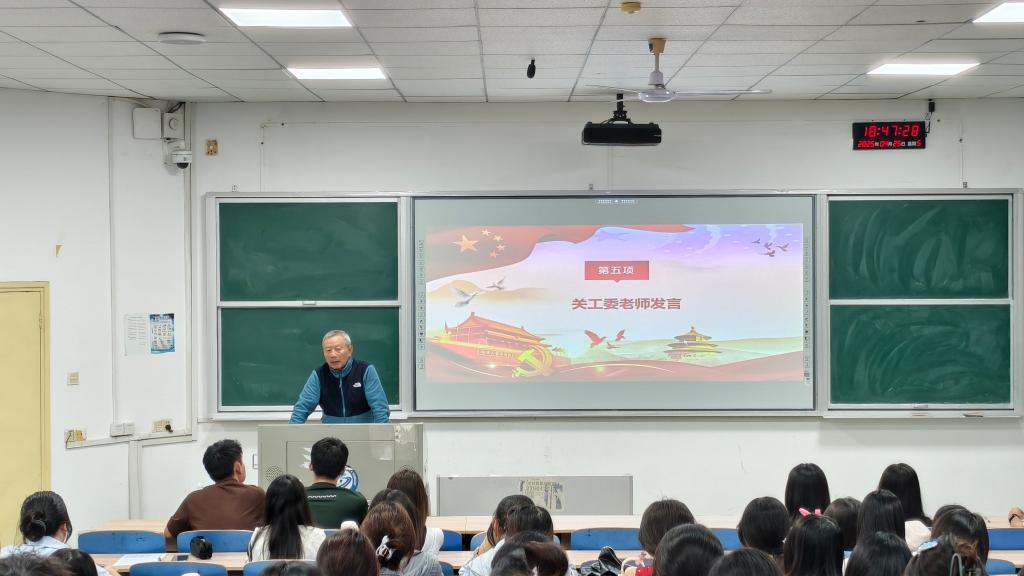 2025年4月25日,在激昂的氛围中,城南学院2025年上半年党校培训班开班典礼于6教208教室拉开帷幕。此次典礼由法学2301班卢诗主持,城南学院关工委雷应风、文法艺术系党总支书记谭怀芝、水利计通系党总支书记杨志凯与全体学员齐聚一堂,共同开启这场意义非凡的学习之旅。