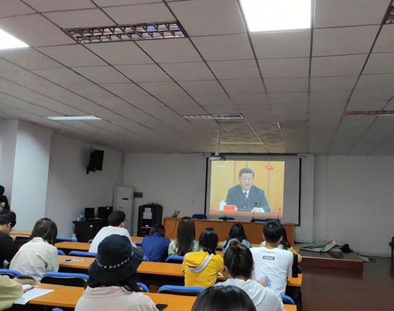 4月30日上午10时30分,纪念五四运动100周年大会在人民大会堂举行,中共中央总书记、国家主席、中央军委主席习近平出席大会并发表重要讲话。城南学院组织教职工和部分学生代表分别在2教201、101观看现场直播。