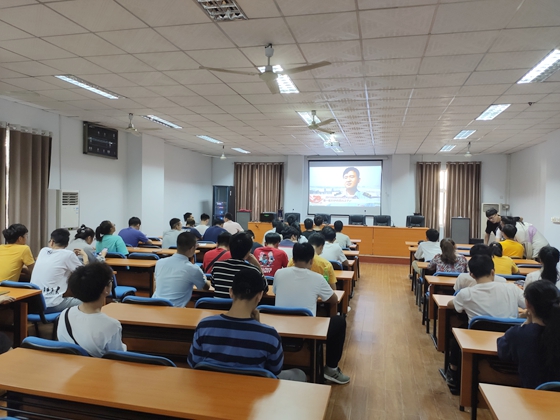 我院学生分别在校友之家、2教201会议室观看70周年庆阅兵仪式,学生们爱国热情高涨,即使座位不够,大家也挤在过道上、站在墙角边,挥舞着五星红旗,高唱《歌唱祖国》、《我爱你中国》、《没有共产党就没有新中国》等爱国歌曲,一首接一首,把整个会场渲染成了欢乐的红色海洋,共同见证这场盛事,共同为祖国70周年华诞欢呼雀跃。