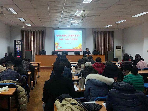 为深入学习贯彻习近平新时代中国特色社会主义思想和党的十九届四中全会精神,大力弘扬高尚师德,激励和引导教师坚定理想信念,培根教育情怀,争做“四有”好老师,12月17日上午,城南学院组织全体教职工在二教二楼会议室开展学习卢永根同志先进事迹活动。院党委书记黄自力主持。