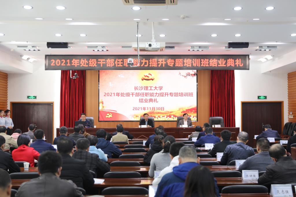 11月30日下午,学校在一办九会议室举行2021年处级干部任职能力专题培训班结业典礼。校党委书记付宏渊、党委副书记刘建民出席。结业典礼由党委组织部副部长、党校副校长靳攀科主持。