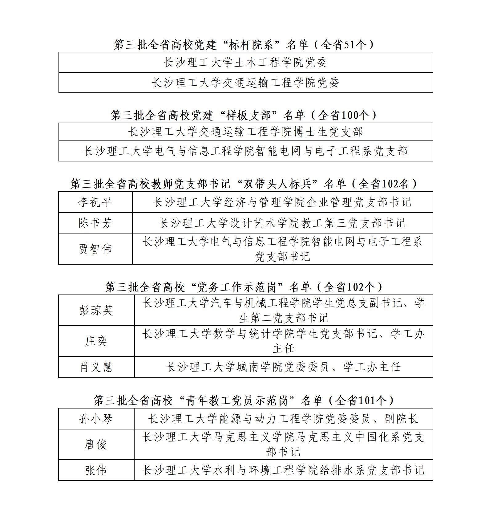 近日,中共湖南省委教育工委全省高校党组织“对标争先”计划第三批项目公示评选结果,威廉体育4个集体、9个个人获评省级党建示范项目荣誉称号,在省属高校中排名第一。