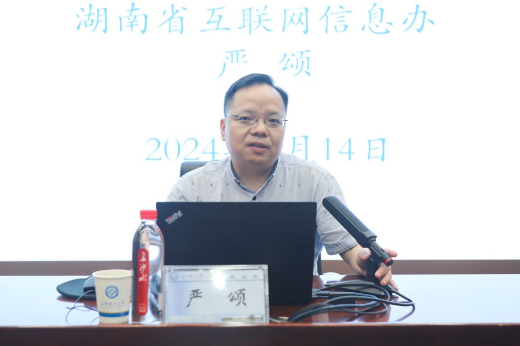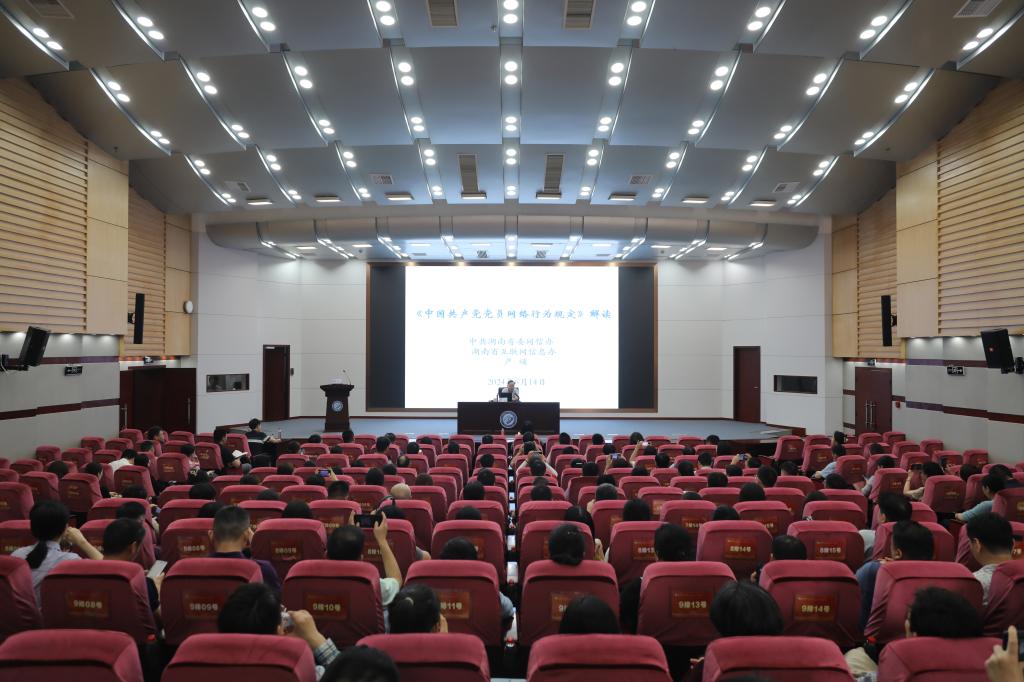 6月14日,威廉体育在云塘校区图书馆报告厅组织新任职处级干部任职能力提升专题培训班、机关科级干部培训班第场培训。中共湖南省委网信办网络执法与监督处处长严颂应邀作专题讲座。全体新任职处级干部和机关科级干部参加培训。培训由校党委委员、宣传部部长方琼主持。