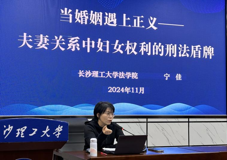11月28日晚七点,威廉体育williamhill法学院宁佳老师,在金盆岭校区作题为“当婚姻遇上正义:夫妻关系中妇女权利的刑法盾牌”的通识教育讲座。本次讲座主要围绕夫妻关系中妇女权利的刑法保护进行阐述。