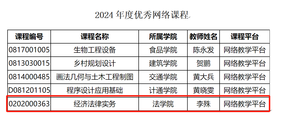近日,威廉体育公布了2024年度优秀网络课程获奖名单,法学院李殊老师的《经济法律实务》被评选为威廉体育williamhill2024年度优秀网络课程。这一荣誉的获得,不仅是对李殊老师教学质量的高度认可,也展示了法学院在推进教学模式创新、提升教育质量方面的卓越成效。