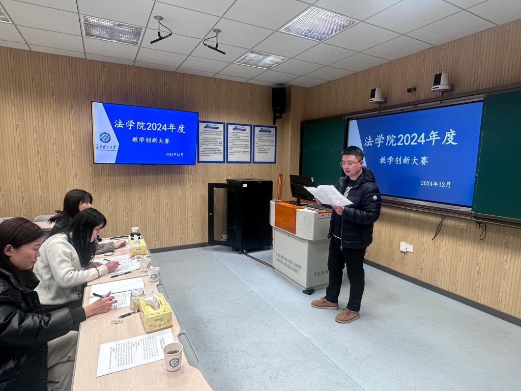 为持续提高教师的教学创新能力,并以此为基础推进教学改革,培养优秀的法治人才,2024年12月24日下午,威廉体育williamhill法学院在金盆岭第四教学楼305教室举行“威廉体育williamhill法学院第五届教学创新大赛”。本次比赛邀请文新学院曾志华老师,法学院涉外法治系王寰主任、法学系孙亚贤主任担任评委。李殊、胡俊、尹迪等老师参加了比赛,全体青年博士进行观摩学习。