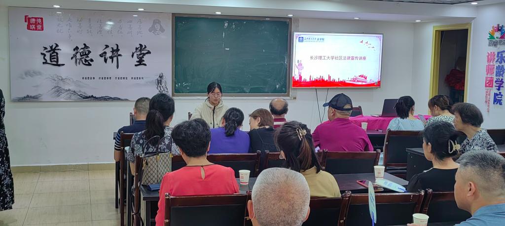 “崇德尚法,守正致公,推动全面法治中国建设,将青春融入法治中国建设的伟大实践,我们一直在行动。”这是5月22日法学院学生党支部法治宣传进社区宣讲一幕,本科生党支部谭校梅在长沙市雨花区圭塘街道景程社区就《民法典》中与群众生活息息相关的法律知识进行普法宣传讲座。支部其他成员在天心区桂花坪街道、赤岭路街道等五个社区开展形式多样的法治宣传。
