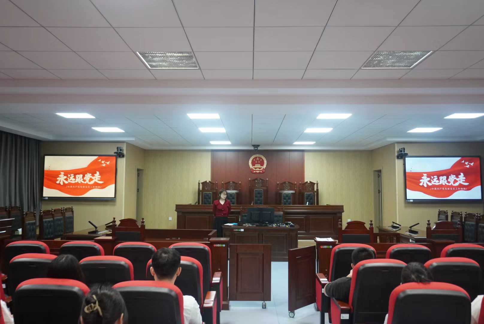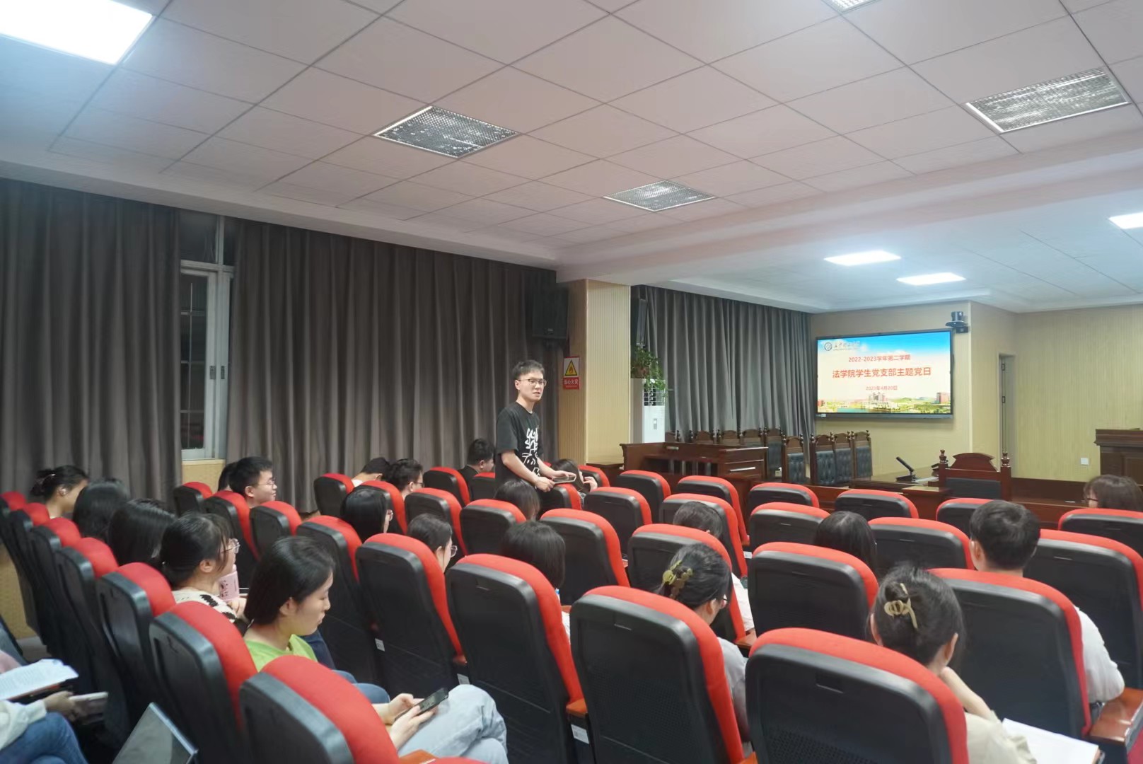 4月20日晚,法学院学生党支部在4教模拟法庭组织开展主题党日活动,学生党建辅导员熊文娟及本科生、研究生党支部成员等70余人参加活动。