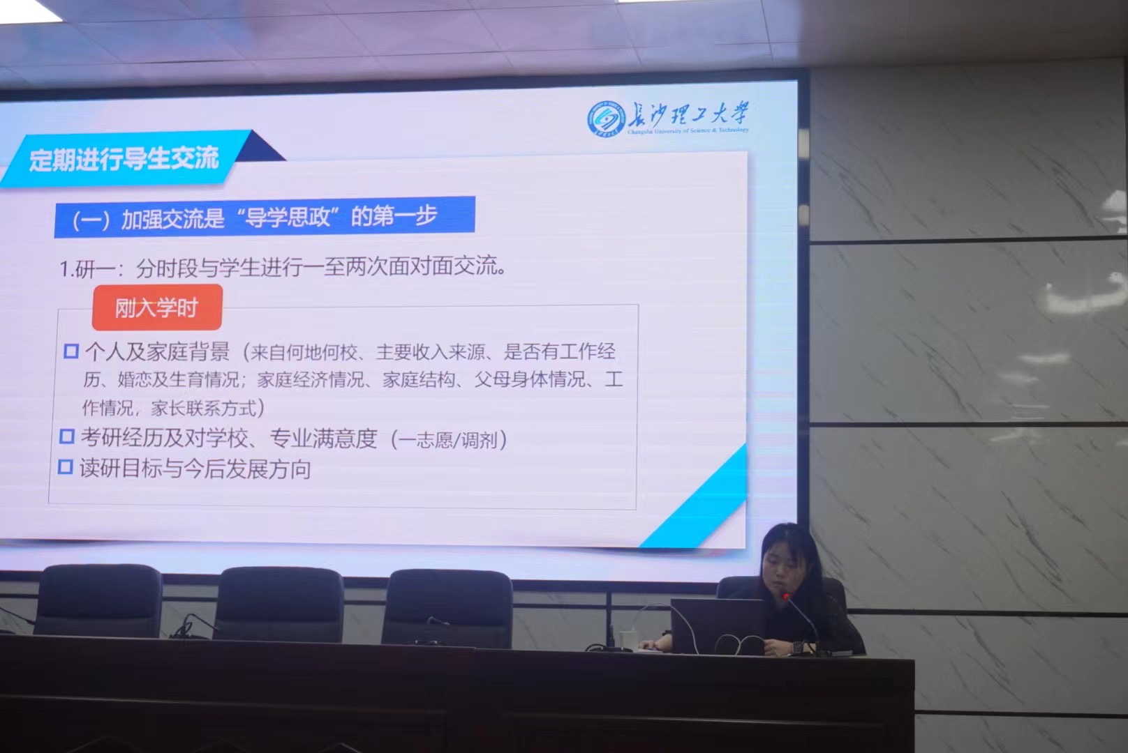 为深入贯彻落实习近平总书记关于研究生教育工作的重要指示和全国、全省研究生教育会议精神,落实立德树人根本任务,更好推进研究生导学思政建设工作,法学院于3月19日下午组织开展研究生导师“导学思政”能力暨心理健康教育提升培训,本次培训聚焦研究生教育思政高质量建设工作,提升研究生导师育人水平。学院全体研究生导师参加,研究生辅导员曾宇欣主讲。