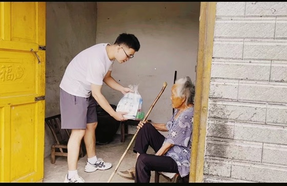 实践团的成员们与熊奶奶进行了深入的交流,倾听她的故事,了解她的情况和需求,并为她送上了精心准备的生活物资。这份来自年轻人的关爱,让熊奶奶的脸上绽放出了幸福的笑容。
