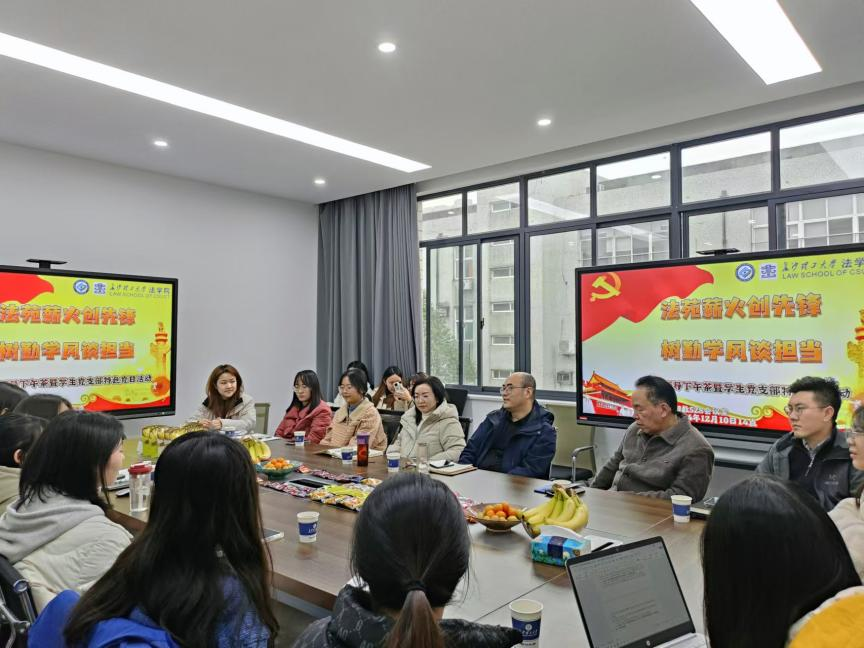 “法苑薪火创先锋,树勤学风谈担当”,本次活动有利于营造积极向上的学风氛围,也加深了学生对党员身份的认同感和使命感。学生党员罗佳怡表示:“我将以更加饱满的热情投身到学习和工作中,遵守纪律,勇于担当,以实际行动践行党员的责任与使命,为学风建设做出自己的努力。”