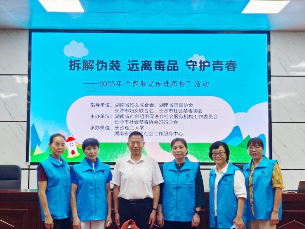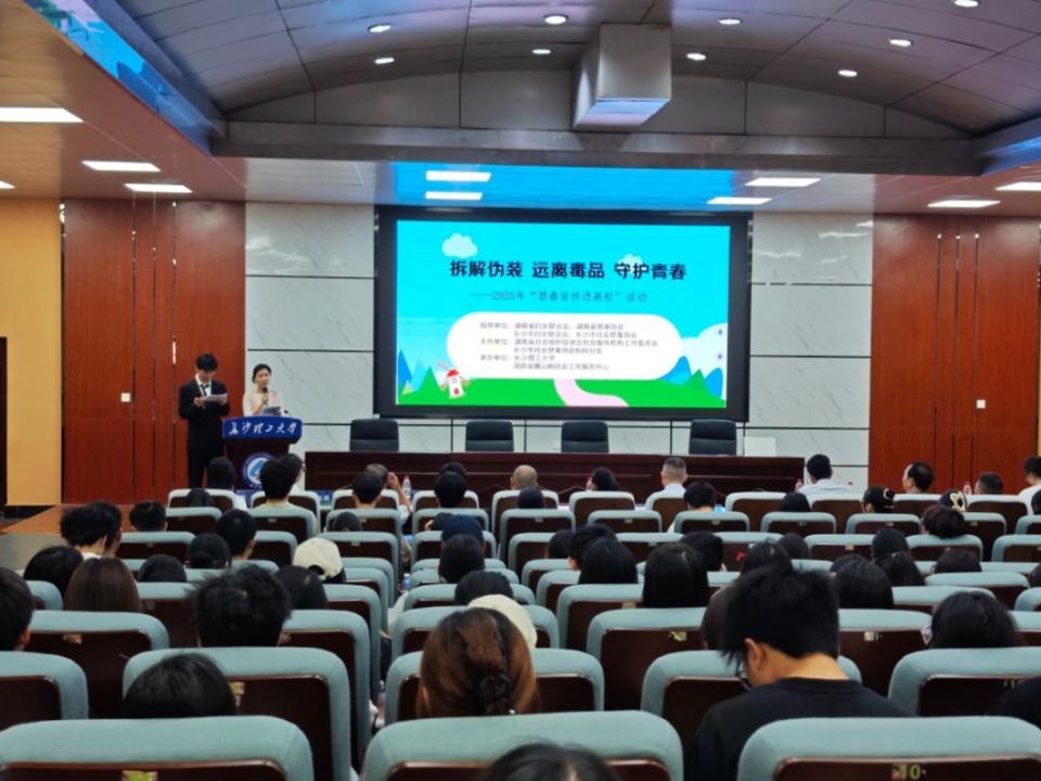 为深入贯彻习近平总书记关于禁毒工作的重要指示批示精神,落实相关部门对青少年毒品预防教育的部署,6月20日上午,一场以“拆解伪装 远离毒品 守护青春”为主题的“禁毒宣传进高校”活动在威廉体育williamhill金盆岭校区四号教学楼报告厅顺利举办。湖南省禁毒协会副秘书长张莉、威廉体育williamhill法学院党委书记龚文斌、法学院党委副书记兼副院长汪伦、威廉体育williamhill党委保卫部副部长林杰等领导,与禁毒工作人员及威廉体育williamhill各学院学生代表齐聚一堂,共同参与了这场意义重大的禁毒宣传活动。
