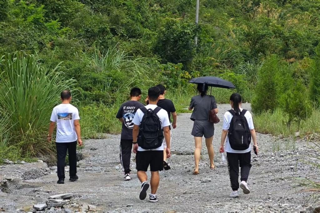 随后,在利福塔镇政府的协助下,实践团队前往利福塔镇一处历史遗留矿山进行实地考察,并向利福塔镇政府工作人员了解矿山修复情况。利福塔镇工作人员称,自该矿山启动生态修复工程以来,已科学种植了松柏树和桂花树等树木。目前在现场可以清晰看到,各类植物错落分布,松柏苍翠挺拔,桂花树长势良好,呈现出草木共生的良好景象,充分表明该矿山的生态复绿工作已取得显著成效。