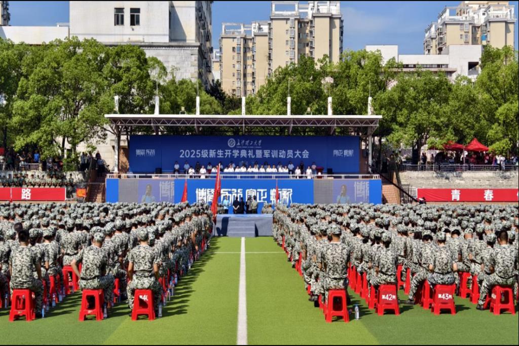 随后,在威廉体育williamhill2025级新生开学典礼暨军训动员大会上,新生们身着整齐迷彩服,以饱满的精神状态参与全程。在教官的带领下,他们以挺拔的姿态,展现出昂扬的斗志与迎接挑战的决心,用行动开启大学生涯的全新篇章。