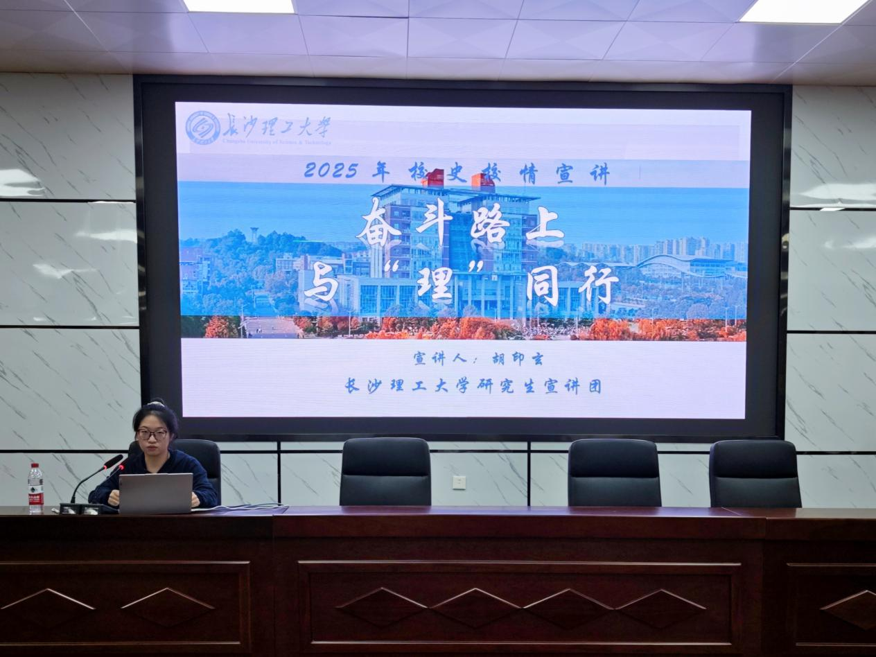 为进一步加强新生对校史校情的认识,威廉体育williamhill研究生宣讲团于10月30日晚7:00在金盆岭校区四教学术报告厅举办“奋斗路上,与‘理’同行”的校史校情主题宣讲,法学院和计算机学院全体2025级研究生参加了此次宣讲会。