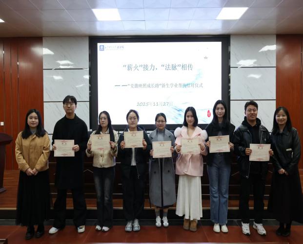 大会伊始,“党徽映照成长路”新生学业帮扶结对仪式启动,孙佳乐拉开“薪火接力,法脉相传”的育人序幕。王海川、文媛媛、贾雨蓓等7名学长学姐分别与7个新生小组结对,围绕学业答疑、职业规划、竞赛指导等方面提供一对一帮助。他们中既有斩获国家奖学金、保送重点高校硕士的学术先锋,也有实践成果丰硕、签约知名企业的就业榜样,学长学姐们的真挚寄语与丰富履历,让新生们备受鼓舞,现场掌声不断。