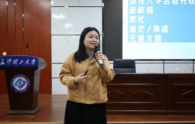 会议结束后,曾宇欣针对全体寝室长和心理委员进行了一次题为“大学生常见心理困惑和诱发因素”的培训沙龙,鼓励新生朋辈互助员积极关注寝室成员和班级同学的动向,为班级和寝室的安全稳定保驾护航。