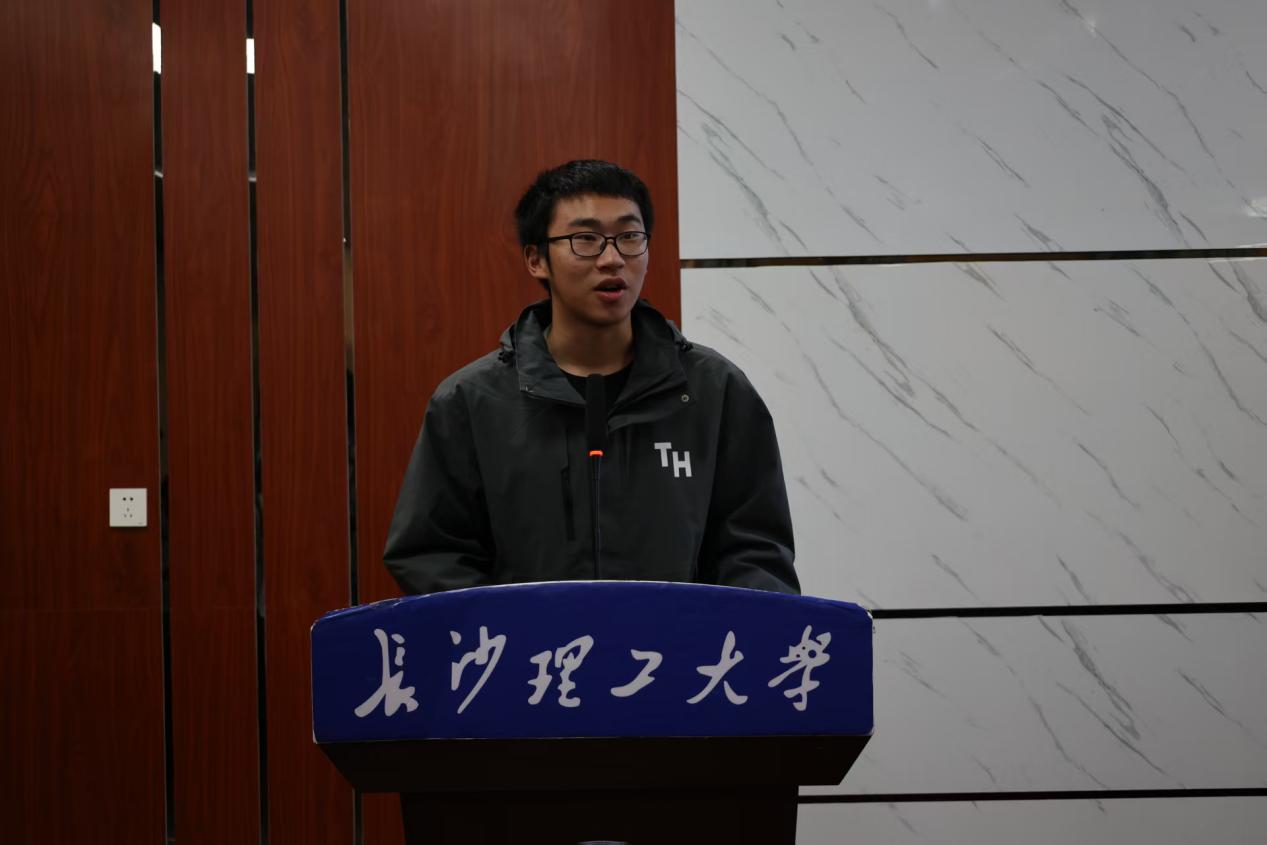 随后,年级组长李博涵同学上台,对入学两个月以来的年级工作进行全面总结。他从课堂表现、活动参与、日常管理等方面梳理了新生们的成长与进步,同时客观指出了部分同学在适应大学学习生活中存在的问题。展望未来,李博涵同学详细介绍了学院即将推出的“书香班级”系列活动,包括案例析法、好书共读、文献研学三大特色赛道,鼓励同学们以小组为单位积极参与,在思辨与交流中锤炼专业能力。