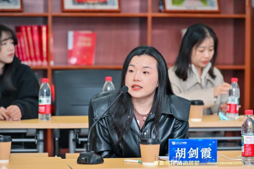活动伊始,王寰副教授以“宪法如何影响青春成长”为切入点展开讲述。随后,现场播放了主题微电影《宪法—生》,梳理了宪法诞生与发展的关键历程。影片结束后,两名学生结合影片内容与自身经历,围绕宪法修订与校园生活、法学生职业发展与创业机遇等话题分享了见解,进一步增强了课堂互动性与现实联系,为后续环节营造了良好氛围。