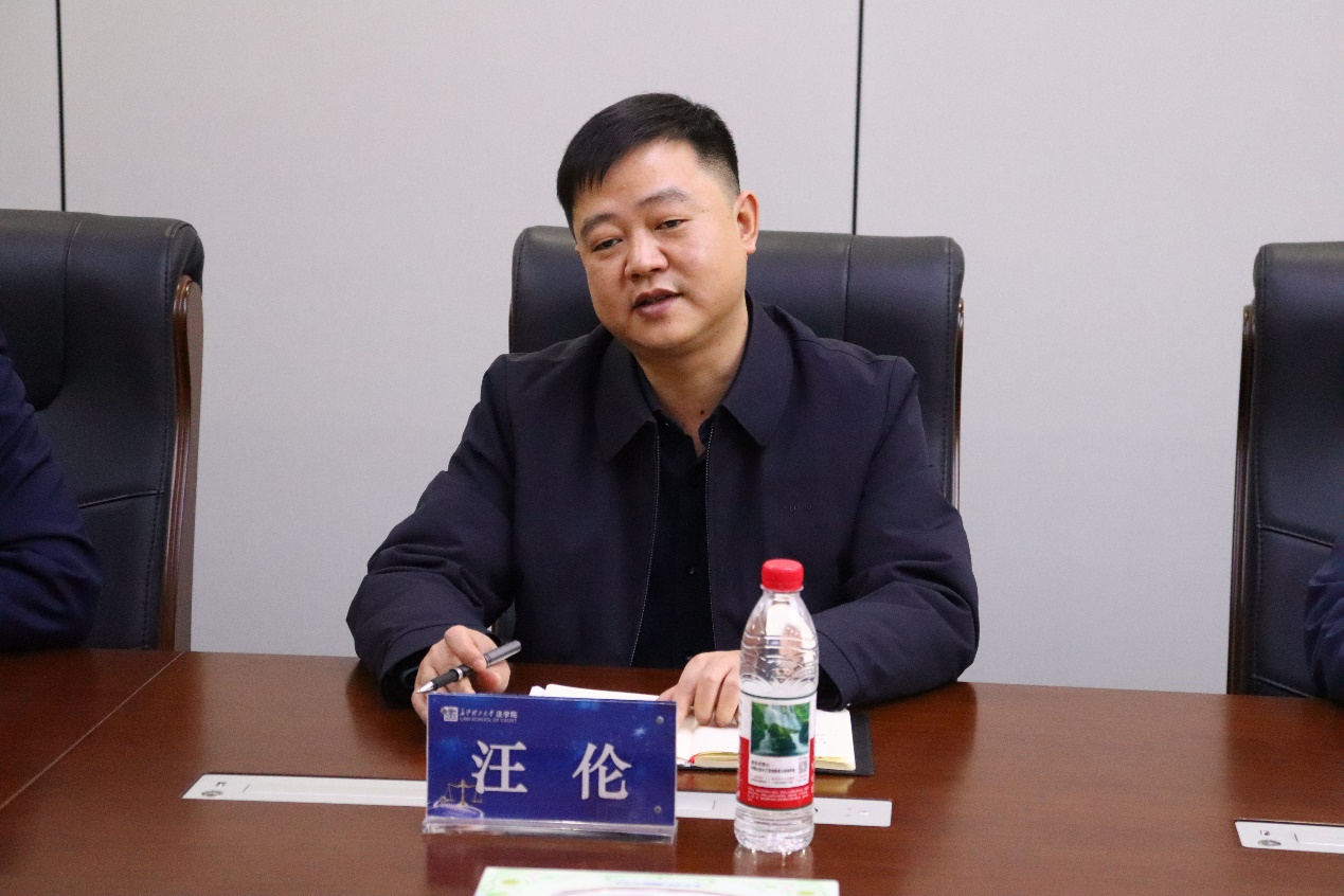 汪伦介绍了学院基本情况、学科专业优势以及开展法律援助工作的基础与成效。指出学院已设立固定法律援助办公场所,拥有专业的指导老师团队,学生法援团常态化开展法律服务活动。希望能在长沙市公共法律服务中心的指导下,进一步规范运行,师生协力推进“法律援助工作站”授牌工作。