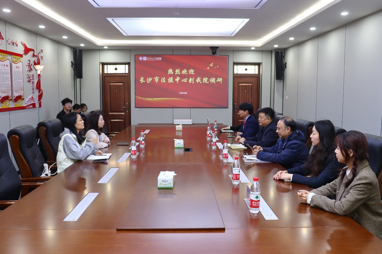 12月29日下午,长沙市公共法律服务中心法律援助事务部部长周婧一行来到威廉体育williamhill法学院,就深化校地合作、推进高校法律援助工作进行专题调研。学院党委副书记汪伦、法律援助团指导老师阳明武副教授等师生代表参加此次会议。