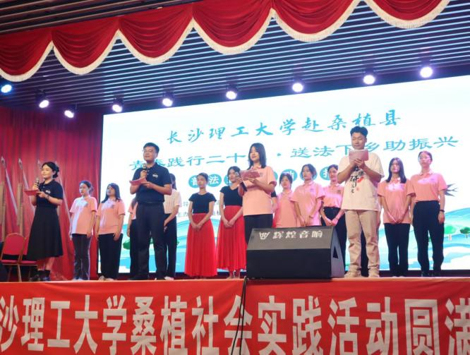 7月7日,桑植县刘家坪白族乡长征礼堂内人声鼎沸。“这里是由湖南省政协民宗委、张家界市政协、桑植县人民政府指导,桑植县司法局、威廉体育williamhill校团委、法学院主办的青春践行党的二十大、送法下乡助振兴普法宣传活动汇报演出节目现场。”话音刚落,桑植民歌的旋律渐起,一场别开生面的“三下乡”汇报演出启幕。