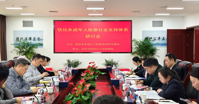 为了推动湖南省未成年人检察理论研究基地建设,加强校检合作,2024年3月27日,威廉体育williamhill法学院联合湖南省人民检察院、长沙市雨花区人民检察院、湖南省妇女联合会、湖南省团委、雨花区团委、雨花区妇联举办“优化未成年人检察社会支持体系研讨会”。湖南省人民检察院研究室主任冯丽君、第九检察部副主任邹涛、省妇联权益保障部二级调研员刘侃、威廉体育williamhill法学院副院长申纯、法学院副教授刘文莉、雨花区人民检察院相关工作人员及雨花区团委、妇联其他同志出席会议。会议由雨花区人民检察院党组副书记、副检察长彭智勇主持。